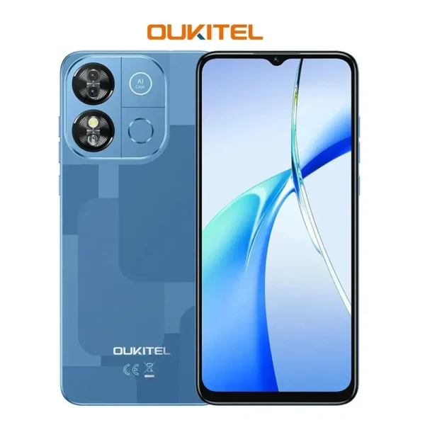 جوال OUKITEL C57S: شاشة 6.52 إنش، 64 جيجابايت تخزين، بطارية 4300 مللي أمبير لون أزرق.