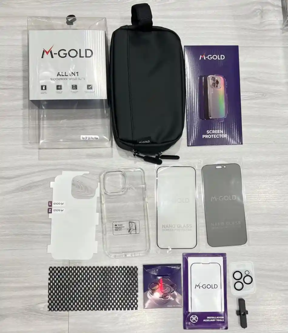 باقة حماية ام جولد هي مجموعة شاملة من المنتجات المصممة خصيصًا لحماية جهاز آيفون الخاص بك من الخدوش والصدمات والتلفيات العرضية. هذه الباقة توفر حماية متكاملة لجهازك وتضمن بقائه في حالة ممتازة لفترة أطول.
