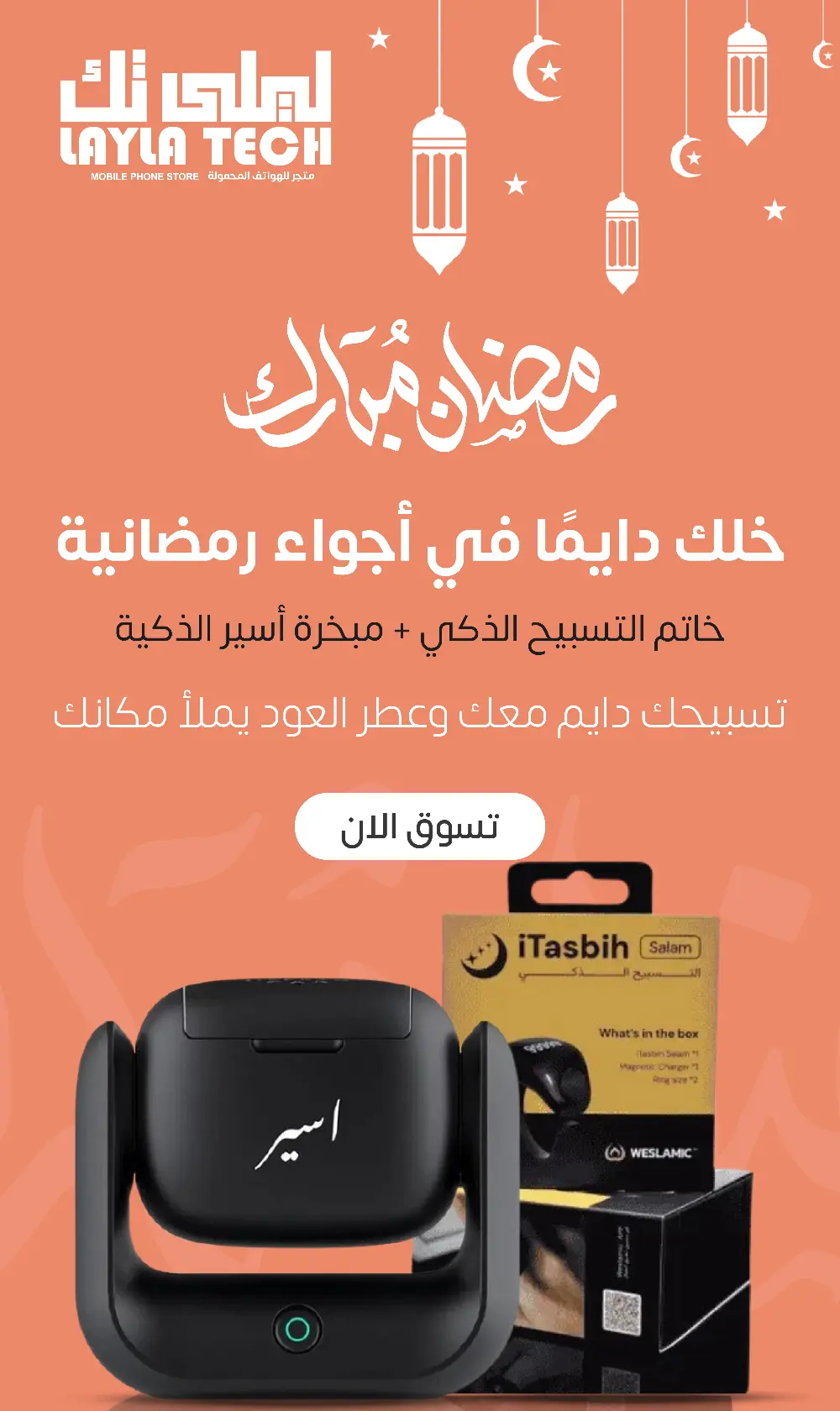 بكج المبخرة وخاتم التسبيح عرض خاص من ليلي تك | عبق الإيمان وراحة البال في عرض واحد!
