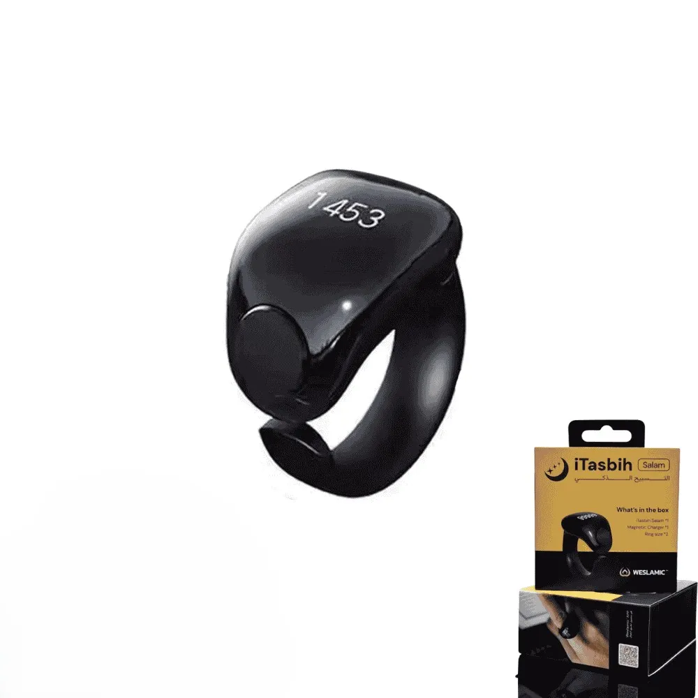 اجعل ذكر الله جزءًا من يومك مع خاتم التسبيح الذكي itasbih. تصميم أنيق ومريح، وعداد تسبيح إلكتروني دقيق، وشاشة OLED واضحة. يتصل بتطبيق جوال لتسجيل التسبيحات، تحديد الأهداف، وتخصيص التنبيهات. بطارية تدوم طويلًا، ومقاوم للماء، ومقاسان مختلفان لتناسب الجميع.