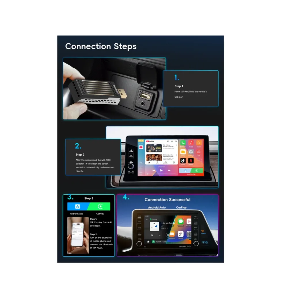 - توافق واسع: متوافق مع أكثر من 98% من السيارات التي تدعم خاصية CarPlay، مما يجعله الحل الأمثل للغالبية العظمى من السائقين.