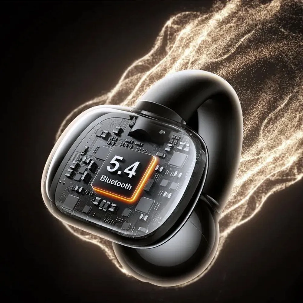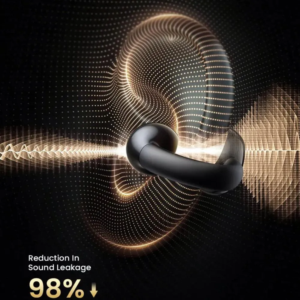 - تصميم مشبك الأذن لراحة لا تُضاهى: تتميز السماعات بتصميم Memory Ear Clip الذي يوفر ملاءمة آمنة (Secure Fit) دون الحاجة لإدخالها في قناة الأذن، مما يضمن الراحة طوال اليوم.