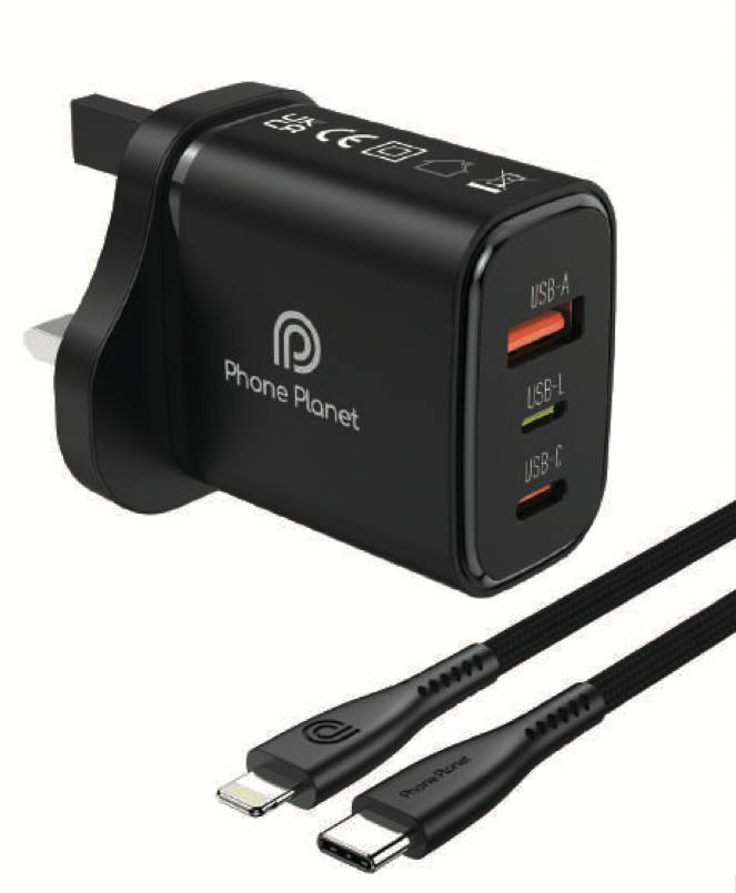 شاحن بمنفذ USB-L + منفذ USB-C + منفذ USB-A -30W -Phone planet